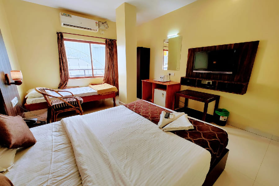 The Deluxe Room at Hotel The King's offers a spacious and elegant setting, perfect for guests seeking added comfort during their stay. Designed with tasteful interiors and modern amenities, it features a plush king-size bed, air conditioning, high-speed Wi-Fi, and a flat-screen TV for your entertainment. The room also includes a private balcony or large windows that provide scenic views of the lush surroundings or tranquil sea breeze, creating a calming atmosphere to unwind.